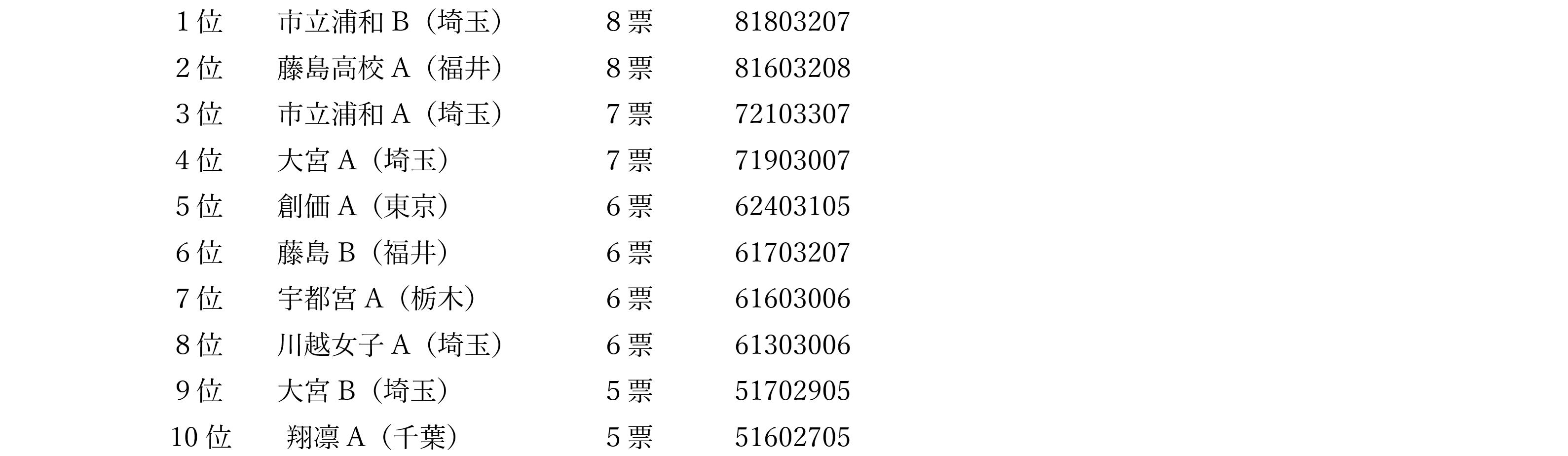 上位10チームの結果