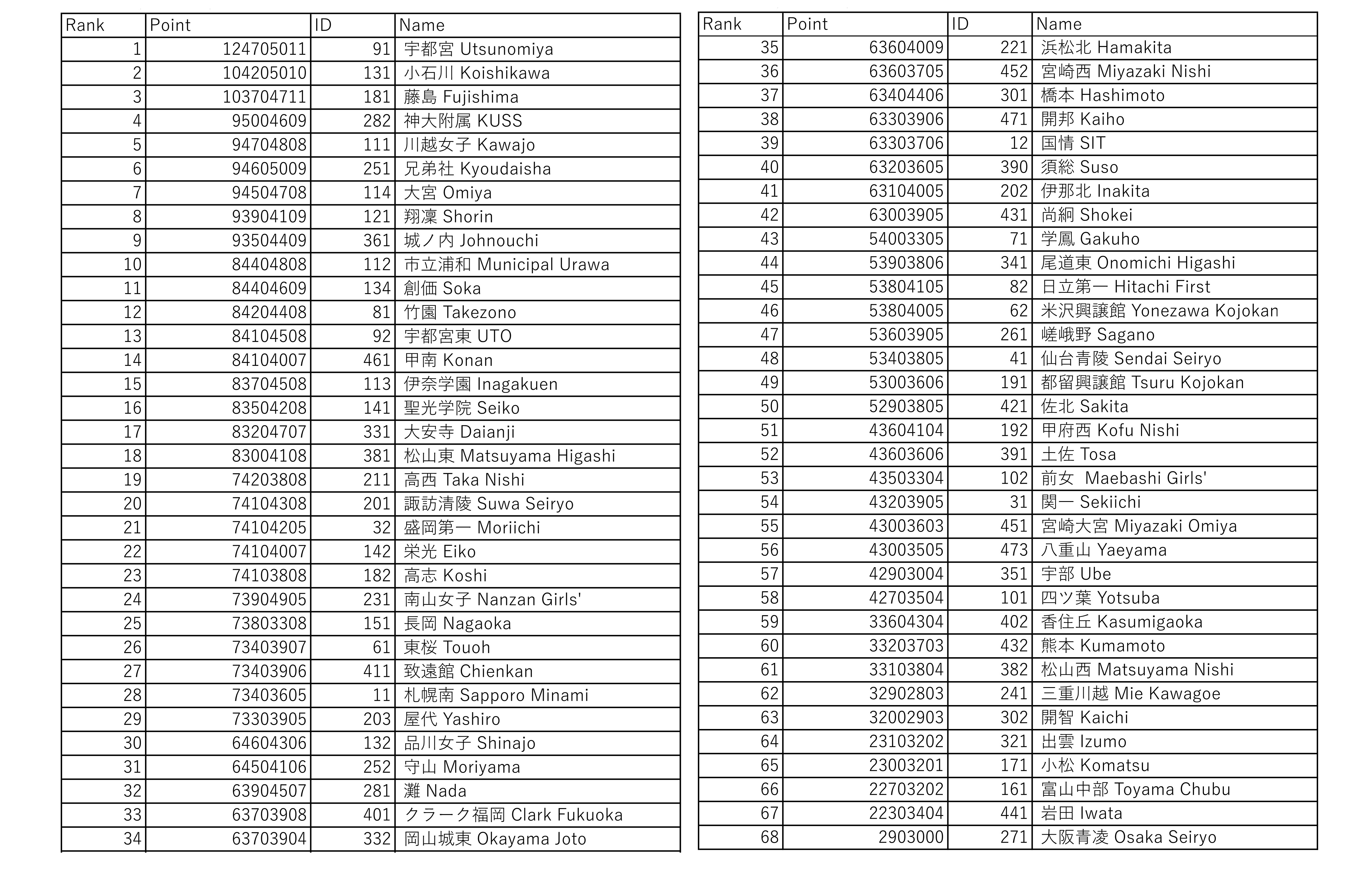 大会結果 チーム順位 全国10位
