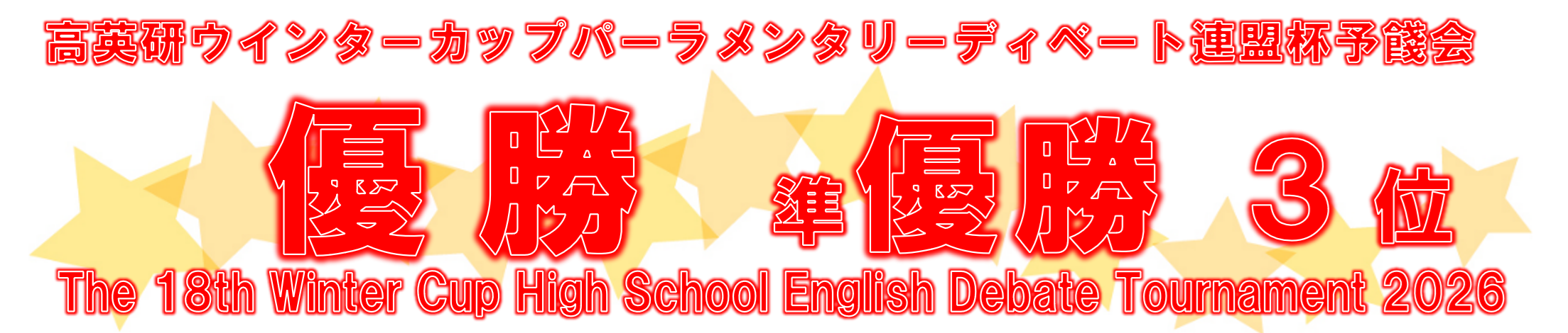 大会名: 埼玉高英研ウインターカップ英語ディベート大会 兼 第15回日本高校生パーラメンタリーディベート連盟杯 埼玉県大会