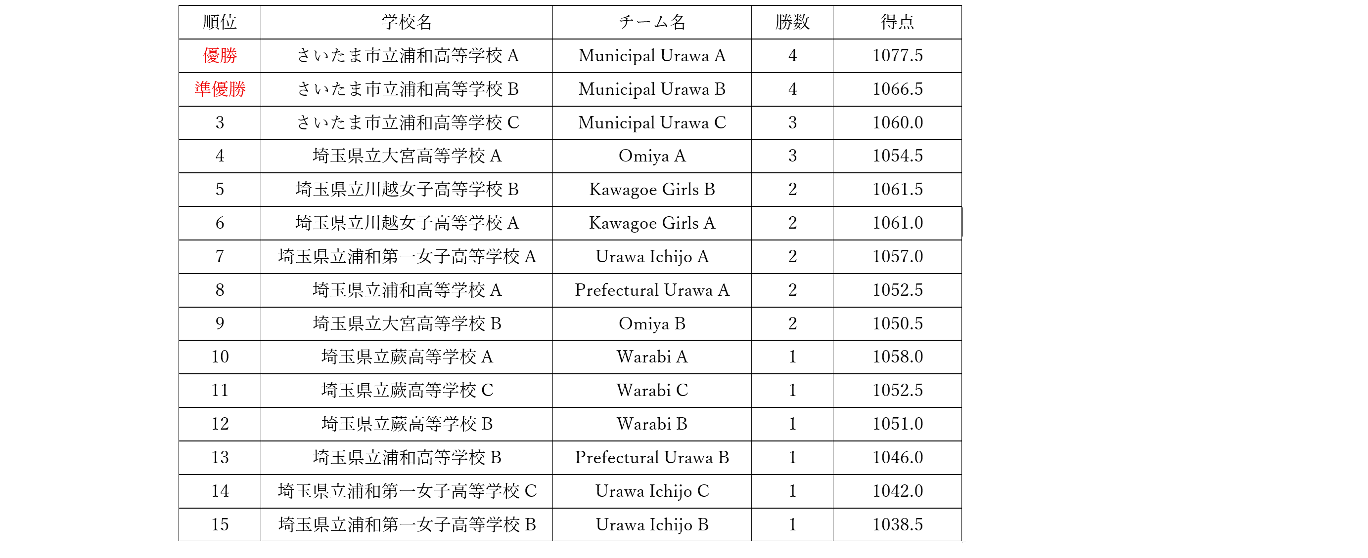〇〇〇〇 さいたま市立浦和高等学校 2チーム