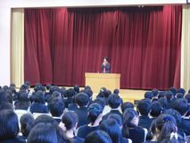 12月3日(木)に視聴覚ホールで、平成27年度シンガポール・マレーシア海外修学旅行の解団式を行い、11月26日(木)から始まった修学旅行はすべて終了しました。生徒たちは、この海外修学旅行で一回り成長して、自分の視野を広げ、アジア、そして世界という大きな視点から物事を考えられるようになったと思います。今後の学校生活に是非、生かしてください。