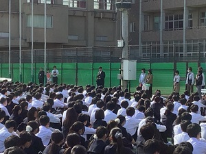 4月20日(月)、中高合同で避難訓練を行いました。 地震や火災が起こった際に、落ち着いて安全に避難できるよう、グラウンドまでの避難経路を確認しました。 訓練の最後には、校長先生から「日頃から備えておくことの大切さ」についてお話がありました。 日差しの強い時間帯でしたが、無事に訓練を終えることができました。