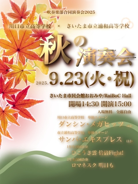 川口市立高等学校吹奏楽部の皆様と合同で、秋の演奏会を開催しました!