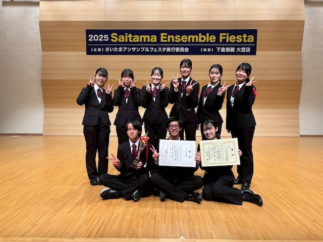 で開催された、2025さいたまアンサンブルフェスタにサクソフォン9重奏が出場しました。結果は金賞受賞に加えて、さいたま市長賞もいただくことができました。