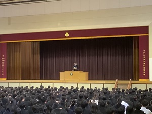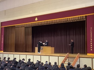 トピックス HOMEトピックス3学期始業式 2026/01/09 3学期始業式 1月7日(水)に3学期始業式が行われました。 校長先生からの講話、生徒指導主任から今後の生活に向けた話がありました。 その後、大会報告、伝達表彰を行い、最後に校歌斉唱しました。 前のページへ戻る